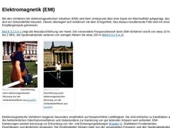 Bei den Verfahren der elektromagnetischen Induktion (EMI) wird dem Untergrund über eine Spule ein Wechselfeld aufgeprägt, das dort ein Sekundärfeld induziert. Dieses überlagert sich wiederum mit dem Erregerfeld. Das daraus resultierende Feld wird mit einer Empfängerspule gemessen. Bild 4‑20 zeigt die Messdurchführung von Hand. Der verwendete Frequenzbereich beim EMI-Verfahren reicht von etwa 10 Hz bis 2 MHz, die Spulenabstände variieren von wenigen …