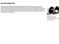 (Bild: Sandstrahlmaschine mit drehendem Strahlkopf und Zentrierwagen für Rohre DN 350 bis DN 1600 [FI-Arx]) Zur Erzielung eines besonders hohen Reinigungsgrades, insbesondere zur Erzeugung einer metallisch blanken Oberfläche bei Stahl- und Gußrohren, können Sandstrahlgeräte eingesetzt werden. Sie werden zunächst an einem Zugring in das zu reinigende Rohr eingezogen und während des Sandstrahlens langsam mit dem Schlauch zurückgezogen, wobei der verbrauchte …