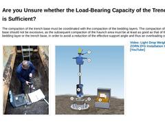 The compaction of the trench base must be coordinated with the compaction of the bedding layers. The compaction of the trench base should not be excessive, as the subsequent compaction of the haunch area must be at least as good as that of the lower bedding layer or the trench base, in order to avoid a reduction of the effective support angle and thus an overloading of the pipes. (Image: Verification of the bearing capacity of the trench base by means … |