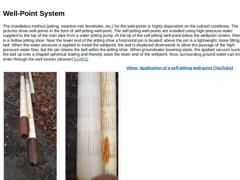 The installation method (jetting, insertion into boreholes, etc.) for the well-points is highly dependent on the subsoil conditions. The pictures show well-points in the form of self-jetting well-point. The self-jetting well-points are installed using high-pressure water supplied to the top of the riser pipe from a water jetting pump. At the tip of the self-jetting well-point below the wellpoint screen, there is a hollow jetting shoe. Near the lower … |