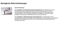 Steckverbindungen Eine bewegliche, druckkraftschlüssige Steckverbindung von Vortriebsrohren ist eine Rohrverbindung, deren Dichtwirkung durch Verbinden der Einsteckenden mit einem Verbindungsstück (Überschiebmuffe, Kupplung, Manschette, loser Führungsring) und Zusammenstecken von Einsteckende (… |