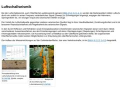 Bei der Luftschallseismik, auch Oberflächen-wellenseismik genannt (Bild 4.5.2.2.2.1.4), werden die Bodenpartikel mittels Luftschall durch ein zeitlich in seiner Frequenz veränderliches Signal (Sweep) zu Schwingungen angeregt, wogegen bei Hämmern, Sprengmitteln etc. ein einziger Impuls die seismischen Wellen erzeugt.