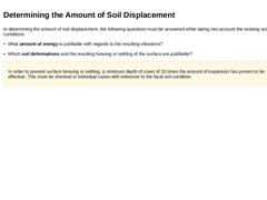 In determining the amount of soil displacement, the following questions must be answered while taking into account the existing soil conditions: In order to prevent surface heaving or settling, a minimum depth of cover of 10 times the amount of expansion has proven to be effective. …