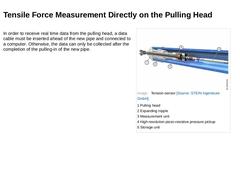 (Image: Target manhole - capstan winch) (Image: Overload protection [Jürge05]) During the pulling-in process, the value of the allowable tensile forces on the new pipe must be strictly enforced. This is accomplished by continuous monitoring (measurement and documentation). Methods of tensile force monitoring:
