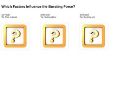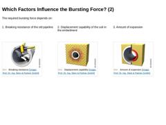 The required bursting force depends on: 1. Breaking resistance of the old pipeline 2. Displacement capability of the soil in the embedment (Image: Breaking resistance) (Image: Displacement capability) (Image: Amount of expansion)