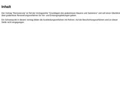 Dieser Vortrag ist Teil der Vortragsreihe "Grundlagen des grabenlosen Bauens und Sanierens" und soll einen Überblick über grabenlose Erneuerungsverfahren für Ver- und Entsorgungsleitungen geben.