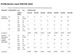 (Tabelle: Prüfdruck, Druckabfall und Prüfzeiten für die Prüfung mit Luft nach DIN EN 1610 [DINEN1610a])
