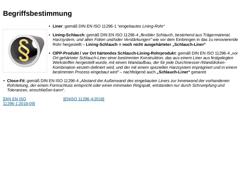 Lining-Schlauch: gemäß DIN EN ISO 11296-4 „flexibler Schlauch, bestehend aus Trägermaterial, Harzsystem, und allen Folien und/oder Verstärkungen" wie vor dem Einbringen in das zu renovierende Rohr hergestellt – Lining-Schlauch = noch nicht ausgehärteter „Schlauch-Liner“