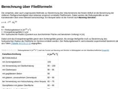 Die simpelste, aber auch ungenaueste Methode zur Bestimmung des Volumenstroms bei freiem Abfluß ist die Berechnung der mittleren Fließgeschwindigkeit über teilweise empirisch ermittelte Fließformeln. Dabei werden die Reibungskräfte an den Kanalwänden über einen Beiwert berücksichtigt. Ein Beispiel dafür ist die Formel nach Manning-Strickler: v = K · I1/2 · Rh2/3 mit: K = Reibungsbeiwert in [m1/3 s-1], I = Energieliniengefälle [-] und Rh= hydraulischer …