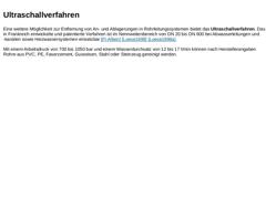 Eine weitere Möglichkeit zur Entfernung von An- und Ablagerungen in Rohrleitungssystemen bietet das Ultraschallverfahren. Das in Frankreich entwickelte und patentierte Verfahren ist im Nennweitenbereich von DN 20 bis DN 600 bei Abwasserleitungen und -kanälen sowie Heizwassersystemen einsetzbar [FI-Alben] [Loese1998] [Loese1998a]. Mit einem Arbeitsdruck von 700 bis 1050 bar und einem Wasserdurchsatz von 12 bis 17 l/min können nach Herstellerangaben …