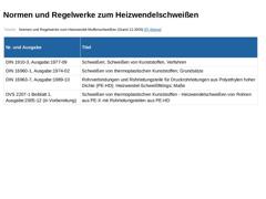 (Tabelle: Normen und Regelwerke zum Heizelement-Stumpfschweißen) |