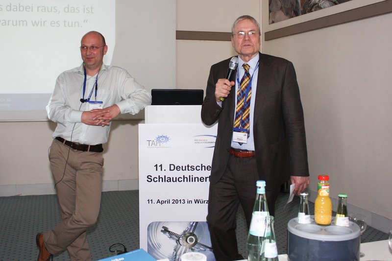 Im Forum diskutierten die Teilnehmer am 11. Deutschen Schlauchlinertag mit Professor Dr.-Ing. Volker Wagner von der Hochschule Wismar (re.) und den Referenten, zu denen u.a. Dr. Jörg Sebastian, SBKS GmbH & Co. KG, gehörte (Foto: TAH)