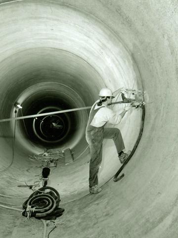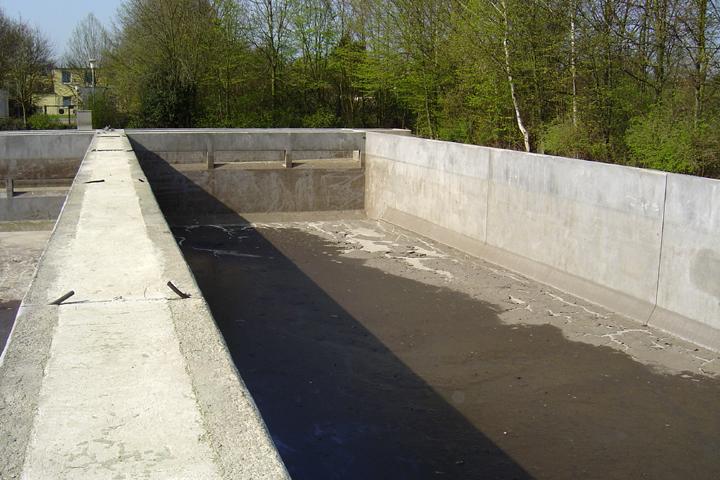 In Kerpen-Horrem und in Mödrath werden zur Zeit zwei Rückhaltebecken komplett saniert (Abb.5). Die im Jahr 1985 gebauten Bauwerke werden aufwändig an den Betonbauteilen instandgesetzt. Die alten Fugenfüllungen werden entfernt und die Fugenkanten saniert. Die ebenfalls durch die DENSO GmbH akkreditierte und geschulte Firma Liedmann Bautechnik GmbH aus Frechen-Bachem baut in die etwa 20 bis 25 mm breiten Fugen das FERMADUR C in Durchmessern von 32 bis 36 mm in den Sohlen- und Wandbereichen ein. Im ersten Bauabschnitt im November und Dezember 2004 wurden am Regenüberlaufbecken Horrem ca. 195 lfdm Profile eingebaut. Aufgrund der Materialeigenschaften verlief der Einbau selbst bei Temperaturen um die 0° C Grenze und teilweise feuchter Witterung reibungslos ab. Auch dem höchsten Wasserstandsspiegel von 4,0 bis 5,0 m halten die Fugen problemlos Stand. Der zweite Bauabschnitt am RÜB Mödrath wird etwa im Mai 2005 erfolgen.