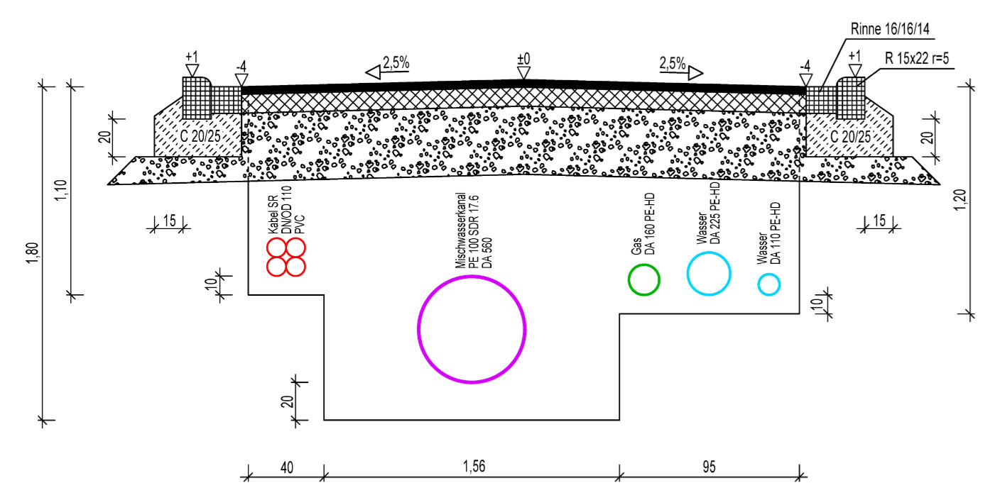 In enger Abstimmung mit dem zuständigen Energie- und Wasserversorger werden dabei die Synergien aus der Durchführung der Baumaßnahme in der offenen Bauweise genutzt, so dass die gesamte unterirdische Infrastruktur rundum erneuert wird.