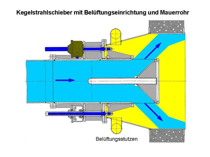 - Die baulichen Gegebenheiten, welche nur bedingt verändert werden konnten, erschwerten den ohnehin schwierigen Einbau der bis zu 23 Tonnen schweren Kegelstrahlschieber und Absperrklappen.