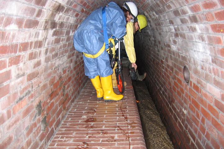 Bei einer Begehung des R-Kanals (s. Foto) wurden neben den für Mauerwerk typischen lokalen Schäden auch ein statisch relevanter Längsriss im Kämpfer mit einer Rissbreite von 1-3 mm festgestellt.