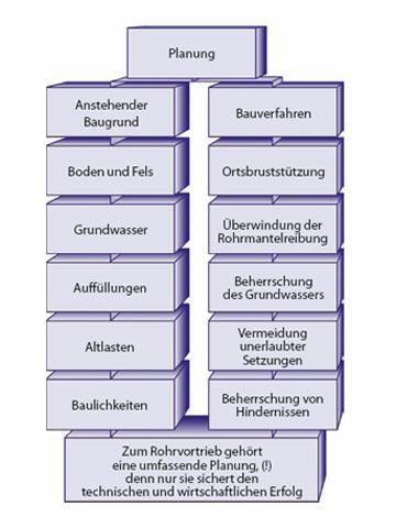 Der Erfolg eines jeden Rohrvortriebes hängt von der sicheren Beherrschung des Baugrundes und der hierin liegenden Risiken ab. Trotz dieser grundlegenden Erkenntnis, der Erarbeitung von technischen Vorschriften und Richtlinien, der Weiterentwicklung der Maschinentechnik sowie einer verfeinerten Mess- und Steuerungstechnik kommt es immer wieder beim Rohrvortrieb zu Schäden, die entweder unmittelbar den Vortrieb selbst oder das Umfeld, zum Beispiel bestehende Infrastruktur oder Bauwerke, betreffen. Die Ursachen sind vielfältiger Natur, lassen sich aber überwiegend auf die vorherrschenden Baugrundverhältnisse zurückführen, die entweder nicht zutreffend ermittelt, beschrieben, planerisch umgesetzt und/oder ausführungstechnisch berücksichtigt wurden.