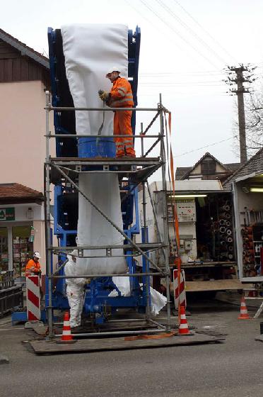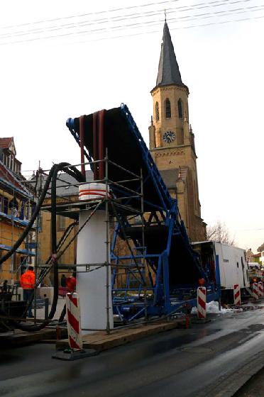 Teil der Problematik und bautechnisch erschwerende Randbedingung war ein starker Grundwasserdruck, da aus einer nahe gelegenen Geländestufe ständig erhebliche Mengen Schichtenwasser in den Untergrund des Ortskerns einströmen. Dies machte nicht nur die Abdichtung des Kanals zu einem wichtigen Vorhaben, sondern stellte zudem erhebliche Anforderungen an die Wasserhaltung während der Projektdurchführung.