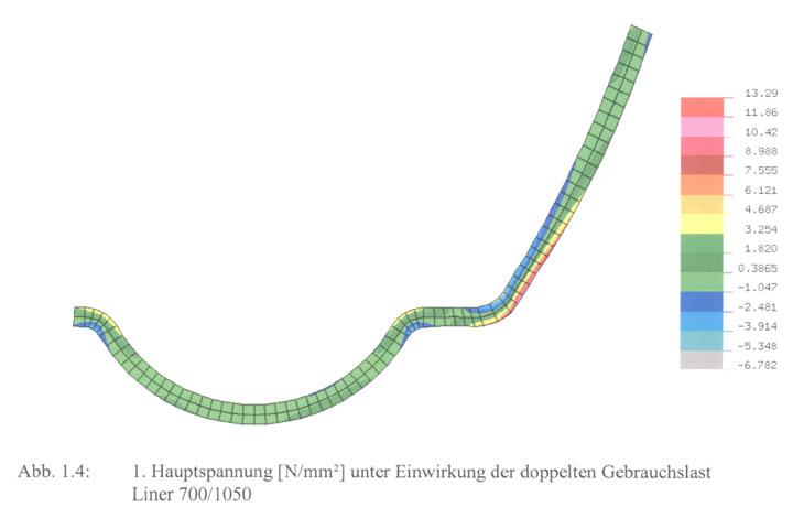 Als Grundwasserstand wurden für die Eiprofile 1,5 Meter über Rohrsohle angenommen. Bei solchen Lastannahmen ist stets nicht nur der reale Grundwasserstand zum Ist-Zeitpunkt zu sehen, sondern auch die Veränderung des Grundwasserpegels infolge der Sanierung durch plausible Annahmen zu berücksichtigen.