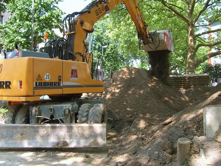 In Konsequenz heißt dies, das die Aufbereitung des Bodens mit ca. 0,5 Mischbinder, das Einbringen in den Graben und mittels des hier zur Anwendung kommenden Rammax -Anbauverdichters an einem Mobillbagger Liebherr 924, zu einem Preis von ca. 6,-€/m3 möglich ist.