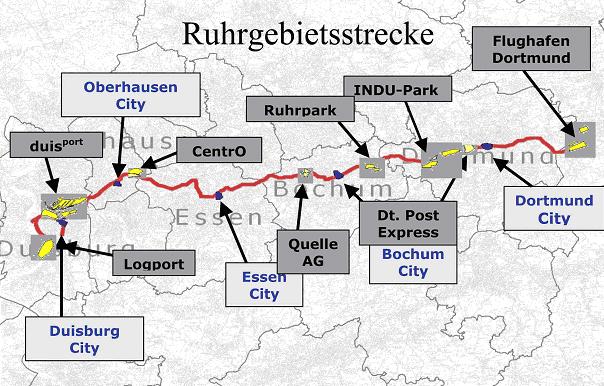 Ballungsräume, wie das Ruhrgebiet, haben auf den ersten Blick alle Vorteile vereinigt, wie z.B. einen großen Nachfragermarkt, ein dichtes Verkehrsnetz, Standorte des intermodalen Verkehrs, große Unternehmen des Handels, vielfältige Produktionsstätten und eine gute Erreichbarkeit anderer großer Zentren in Deutschland und in der Europäischen Union. Diese zentrale Lage ist aber in diesem speziellen Fall auch als Nachteil zu interpretieren, da die Verfügbarkeit der Verkehrswege in der Region für die interne Verkehrsanbindung abnimmt. Eine Steigerung der innereuropäischen Transporte und damit der Nutzung dieser Verkehrswege für solche Transitverkehre führt zwangsläufig zu Standortnachteilen der Gebiete innerhalb der Region. Deshalb sind neue Lösungsansätze gefragt, die eine möglichst schnelle Entlastung bestehender Verkehrswege erlauben, umweltentlastender Natur sind und zugleich eine nachhaltige Verbesserung der Verkehrssituation bieten (Stein et al. 2009).
