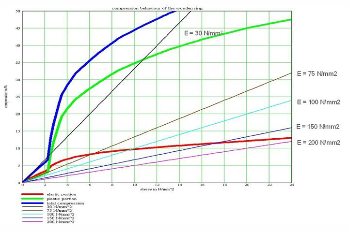 - nichtlineares Steifigkeitsverhalten des Druckübertragungsringes unter Trennung des elastischen und des plastischen Verformungsanteiles,