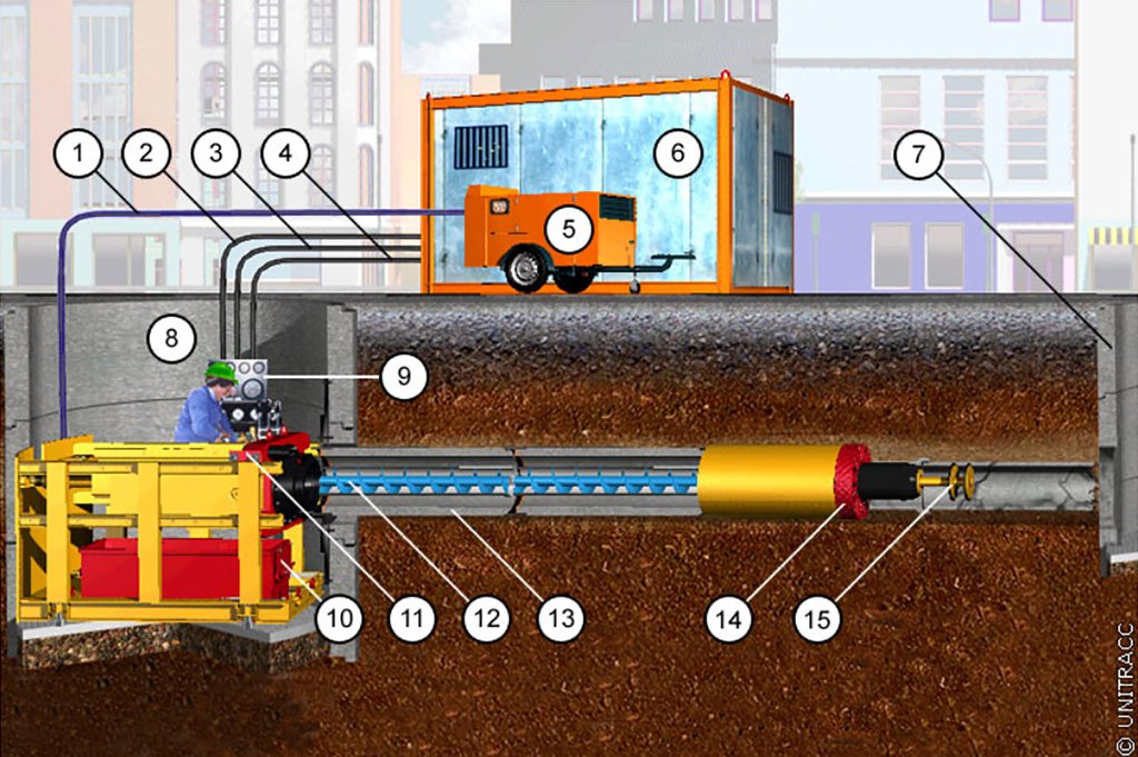 - oft nicht begehbarer, unterirdischer Arbeitsbereich,