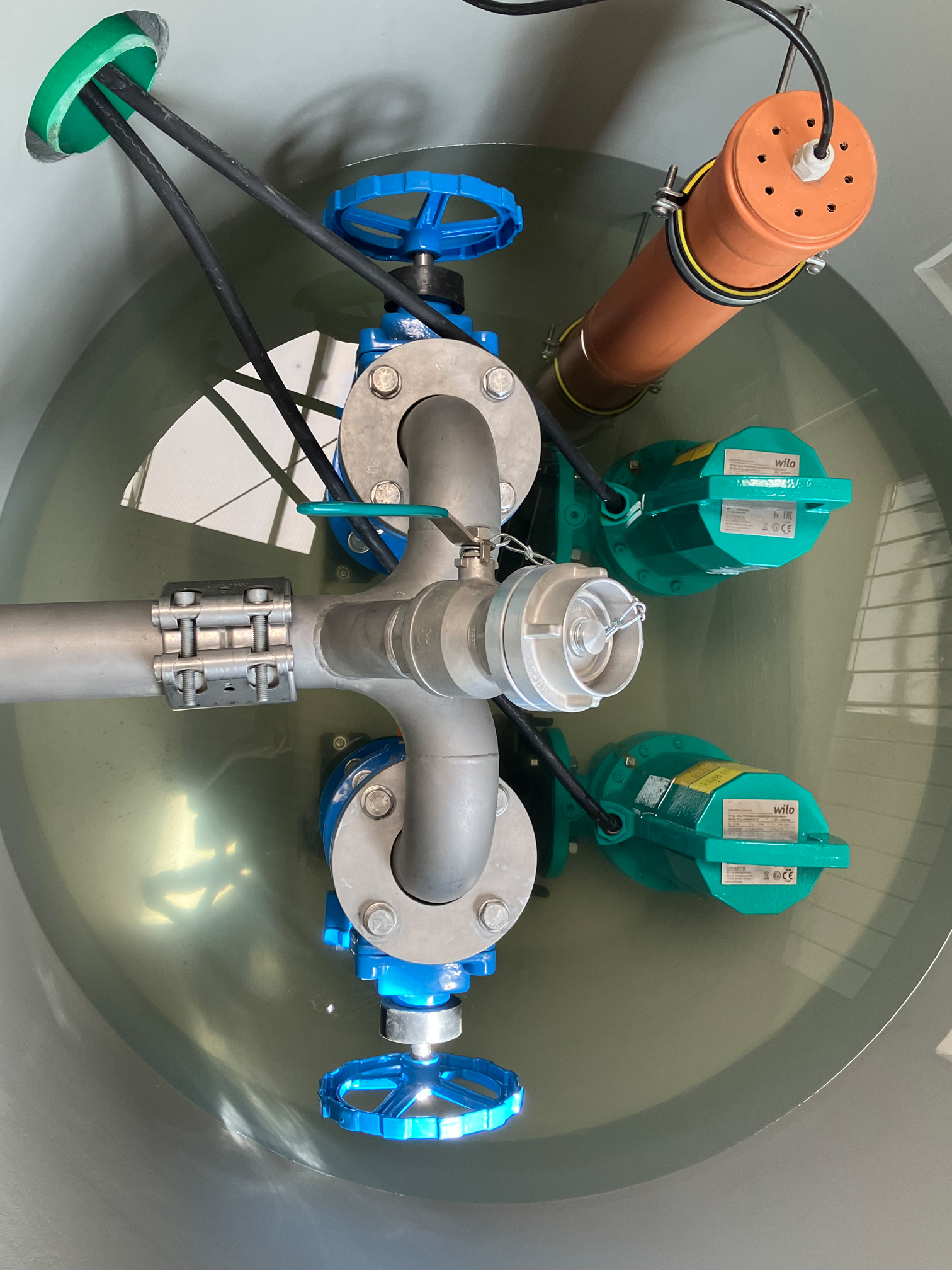 Zur Absicherung gegen Auftrieb hatten alle Behälterbauwerke werkseitig Anschlussbewehrungen erhalten. Bauseitig konnten dadurch die Auftriebssicherungen mühelos und zeitsparend angegossen werden. Und natürlich: Das gesamte Entwässerungsprojekt entspricht den anzuwendenden Normvorgaben – im Kern die DIN 1986-100 in Verbindung mit der DIN EN 12056-4: Gebäude- und Grundstücksentwässerung sowie der DIN EN 12050-2: Abwasserhebeanlagen für die Gebäude- und Grundstücksentwässerung, Teil 2: Abwasserhebeanlagen für fäkalienfreies Abwasser. Während nunmehr im Duisburger Hafen bei der Karl Schmidt Spedition oberirdisch Granulate rieseln, kann der Logistiker gewiss sein, dass unterirdisch Regenwässer richtig fließen.