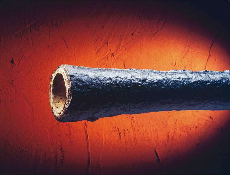 Eine besonders erfolgreiche Entwicklung auf diesem Sektor ist die Zementmörtel-Umhüllung (ZM-U) gemäß EN 15542 [5] (Bild 6). Sie besitzt eine gewisse Porosität, durch die der darunter liegende Zinküberzug mit dem Bodenelektrolyt in Wechselwirkung steht. Bei einer Schichtdicke von 5 mm nimmt der Umhüllungswiderstand infolge einer fortschreitenden Hydratisierung des Zements im Lauf der Zeit zu. Die ZM-U ist durch inerte Fasern strukturell verstärkt und widersteht deswegen enormen mechanischen Belastungen, sei es z. B. beim grabenlosen Einbau in schwierigen Böden oder beim Einbau in offenen Gräben, wo sogar grobkörniges oder felsiges Aushubmaterial direkt wiederverwendet werden kann. Die ZM-U ist daher für den Einsatz in Böden aller Art hervorragend geeignet. Untersuchungen an Leitungen nach über 30 Jahren Einsatz in aggressiven Böden zeigten eine neuwertige Eisenoberfläche ohne jeglichen Angriff [6].