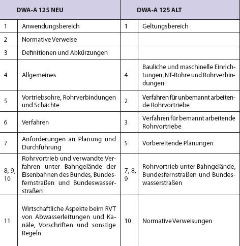 Eine Gegenüberstellung der Hauptgliederung der DWA-A 125 von (2007, Gelbdruck) und DWA-A 125 (1996) zeigt auf den ersten Blick keine wesentlichen Veränderungen (Bild 2).