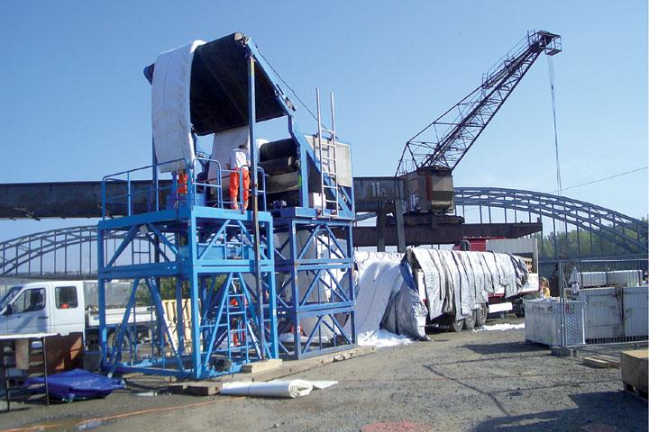 Doch auch für erfahrene Firmen hat jedes Projekt seine Herausforderungen. Sämtliche Bauaktivitäten greifen ineinander und müssen sorgfältig aufeinander abgestimmt werden, um Stillstandszeiten zu vermeiden. Besonders die erfolgreiche und termingerechte Durchführung der Vorarbeiten brachte die Bauleiter der Firma Insituform so einige Male zum Schwitzen, denn die Dükerleitungen waren in vorgegebenen Zeitfenstern abwechselnd nacheinander leer zu pumpen, zu reinigen und mit einer TV - Kamera zu befahren. Beim Leersaugen der Leitungen musste im hydraulisch machbaren Grenzbereich gearbeitet werden. Es waren Saughöhen von über 15 Metern zu bewältigen und der tiefste Punkt der Dükerleitungen lag in ca. 40 Metern Entfernung vom Saugfahrzeug.