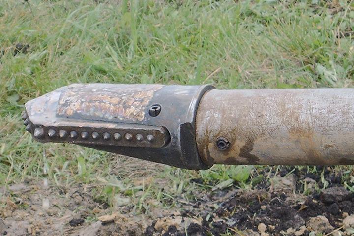 Beim Spülbohrverfahren wird zunächst ein Pilotrohrstrang bodenentnehmend bzw. bodenverdrängend gesteuert vorgetrieben. Der Abbau des Bodens erfolgt hydromechanisch durch einen Düsenkopf (Bild 1) oder mechanisch durch einen Bohrlochmotor mit Bohrmeißel. Der Bohrkopf wird nach dem Sender-Empfänger-Prinzip geortet. Richtungsänderungen werden durch die Steuerfläche des Düsenkopfes oder das dem Bohrlochmotor nachgeschaltete Winkelstück vorgenommen. Die Pilotbohrung kann durch Räumer (Bild 2) in einem oder mehreren Arbeitsgängen aufgeweitet werden.