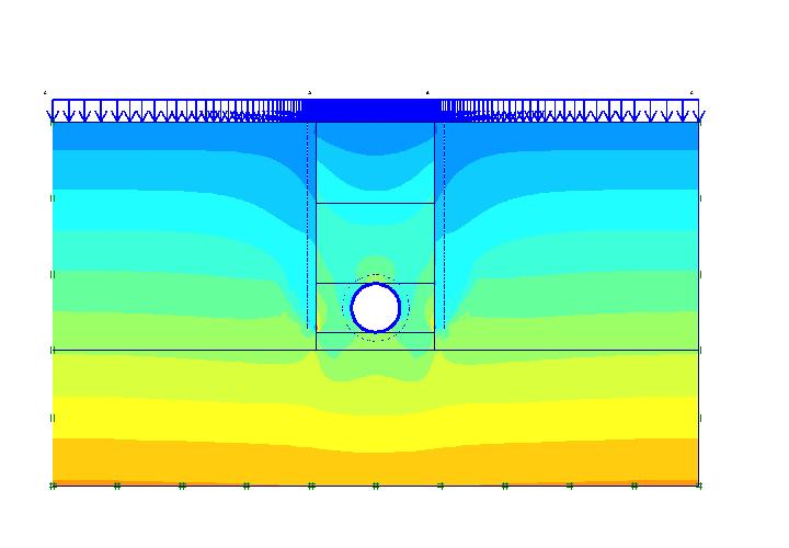 Bild 4a-c: Einwirkungen nach Verfüllen des Leitungsgrabens mit hydraulisch gebundenem Verfüllbaustoff (erhärteter Zustand) am Beispiel eines Betonrohres DN/ID 600, 2 m Überdeckungshöhe (Quelle: S&P GmbH)