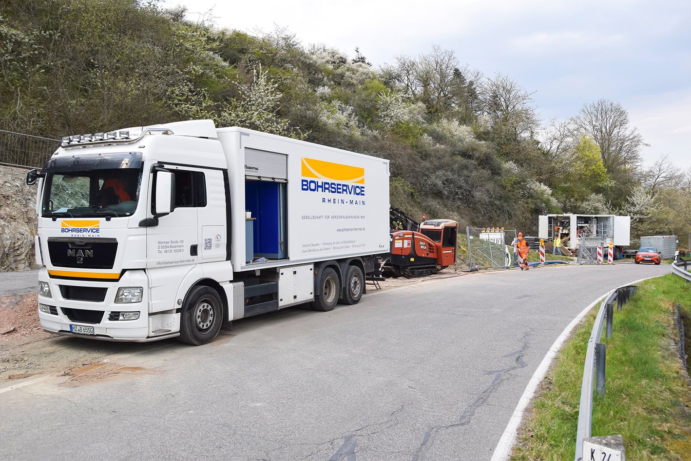 Diese beauftragte als Fachunternehmen für die Spülbohrarbeiten die Bohrservice Rhein-Main Gesellschaft für Horizontalbohrungen mbH, Bodenheim, die über ein hohes Maß an fachlicher Expertise für die durchzuführenden Bauaufgaben verfügt und mit einer eigenen 40-t-Bohranlage bereits ähnliche Projekte in der Region zur vollsten Zufriedenheit aller Baubeteiligten durchgeführt hat. Insgesamt wurden im Frühjahr 2020 für die Bohrarbeiten mit einer Ditch Witch® JT100 eine Dauer von rund vier Wochen veranschlagt.