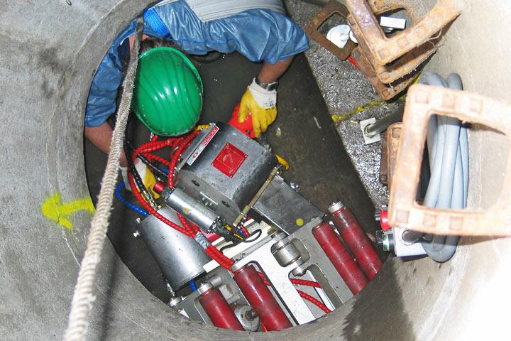 Der Wickelvorgang bietet mehrere verfahrenstechnische Vorteile. "Da selbst bei einer Nennweite von DN 1800 ein Zusammenbau der Wickelmaschine im Schacht möglich ist, erübrigt sich das Abnehmen von Schachtkonen und der damit verbundene Oberflächenaufbruch", erklärt Dipl.-Ing. Fabian Lossie, Technical Sales Support Engineer, RIB LOC Australia PTY LTD. Außerdem kann die Sanierung bei Aufrechterhaltung der Vorflut bis ca. 25 % der Rohrfüllung ohne zusätzliche Wasserhaltung erfolgen. Auch die Risiken beim Einbau sind auf ein Minimum beschränkt. Energie für eine Erwärmung des Endlosprofils ist nicht nötig. Selbst bei Niederschlägen kann die Rotaloc-Maschine in der Haltung verbleiben. "Bei stärkeren Regenfällen oder wenn das Profil auf der Spindel zu Ende gegangen ist, besteht darüber hinaus die Möglichkeit, den Einbauvorgang zu unterbrechen", beschreibt Lossie eine weitere Besonderheit des Verfahrens. Nach einer Reduzierung des Querschnitts kann die Wickelmaschine dann verfahren oder – wenn nötig – zerlegt und geborgen werden. Zur Wiederaufnahme des Wickelvorganges wird die Maschine an der vorgesehenen Position wieder eingebaut.