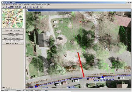 Zur Verifizierung der Genauigkeit beim Einsatz von „Geo-ASYS“ wurden im Vorfeld die im Testgebiet liegenden zugänglichen Entwässerungselemente topografisch vermessen. Die Vermessungsdaten der Entwässerungselemente (Revisionsschächte) wurden in die digitale Stadtgrundkarte eingepflegt. Durch diese Vorgehensweise wird jede vor Ort mit „Geo-ASYS“ durchgeführte Vermessung während der Inspektion des Anschlusskanals überprüfbar. In der nachfolgenden Darstellung wird sichtbar, welche Fortschritte in Bezug auf die Genauigkeit der Verlaufsmessung erreicht wurden.