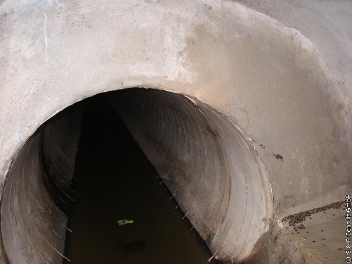 Im Rahmen der Begehung durch S & P im Oktober 2005 wurde der Ist-Zustand des Regenwasserkanals DN 1000 aufgenommen: