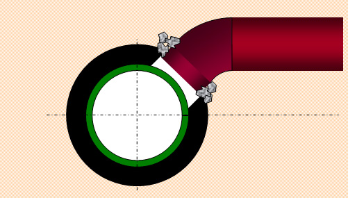 | Stutzen- Einbindung im Liner-sanierten Hauptkanal | Stutzen-Reparatur im nicht - sanierten Hauptkanal | |