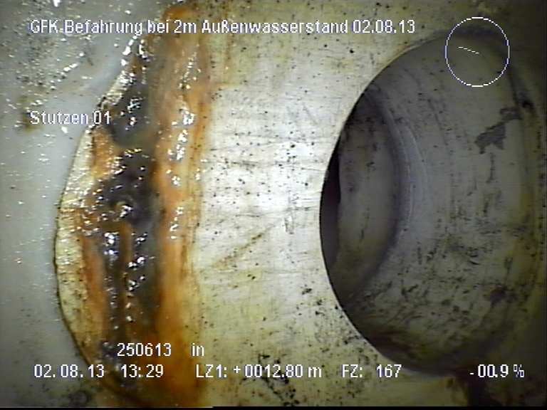 Nach Abschluss der Stutzensanierungen begannen die Systemprüfungen. Dabei standen Belastungen aus Außenwasserdruck im Vordergrund (Fremdwassersanierung). Zusätzlich wurden betriebliche Belastungen aus Hochdruckreinigung simuliert und die damit verbundenen Veränderungen mittels optischer Inspektion erfasst.