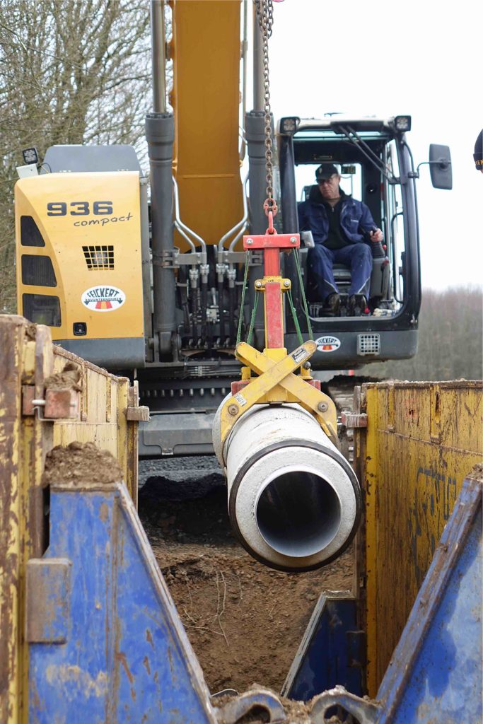 Mit den Fortschritten auf der Baustelle sind die Beteiligten sehr zufrieden, wie Jan Kohlhauer vom Bereich Bauabwicklung bei der Walter Feickert GmbH zusammenfasst: „Zurzeit werden täglich etwa 15 Meter Kanal verlegt. Dabei sind zwei Bagger im Einsatz. Einer hebt den Graben aus, legt das Rohr ein und verdichtet, der andere verfüllt. Die Verlegetiefe beträgt zwischen 3,0 und 4,50 Metern.“