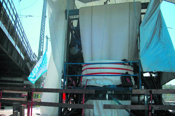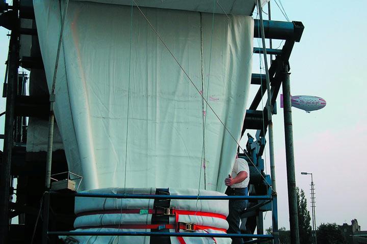 Nicht zuletzt um die enormen Schlauchgewichte handeln zu können, bediente man sich bei Insituform Rohrsanierungstechniken - wie bei den vorangegangenen Dükersanierungen auch - der Doppelinversionstechnik. In die zu sanierende Haltung wird zunächst mit einer Winde der so genannte Einziehschlauch eingezogen. Anschließend wird ein zweiter Schlauch in den Einziehschlauch in der klassischen Inversionstechnik mit Wasserdruck eingestülpt. Damit wird der Einziehschlauch gleichzeitig aufgestellt und an die Altrohrwand gepresst.