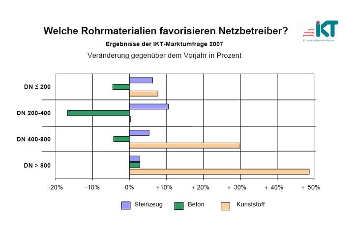 Die Ergebnisse der Marktumfrage zeigen, dass sich der in der Vorjahreserhebung ermittelte positive Trend (siehe IKT-Presseinfo Nr. 19/2006) fortsetzt: Die Investitionen der Netzbetreiber in ihre Kanalisation steigen um bis zu 6% (2007: +2% und 2008: +6%). Die Prozentangaben beziehen sich jeweils auf das Basisjahr 2006.