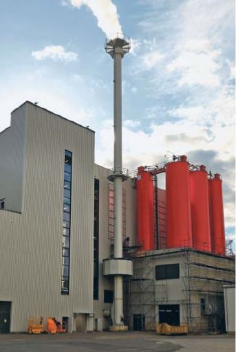 Abb. 4: Die KVA Helmstedt: Mit einer Kapazität von 160.000 t OS erzeugt sie rund 15.000 t phosphat-haltige Asche. Sie wird in den vorderen beiden roten Silos für das spätere Phosphorrecycling gespeichert. [Quelle: CITplus]