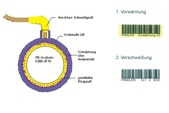 Die Erfassung der Schweißparameter erfolgt über Barcode. Dadurch werden grundsätzliche Fehlerquellen, wie die mögliche manuelle Falscheingabe von Schweißzeit und –spannung ausgeschlossen. Diese Technik hat sich weltweit als Standard durchgesetzt. Um Verwechslungen ausschließen zu können, ist der Barcode sinnvollerweise auf jedem Bauteil in Form eines Labels aufgebracht und ist damit fester, unverlierbarer Bestandteil des Fittings.