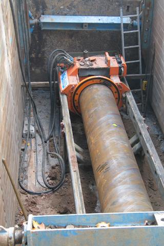 "Wir haben dem Kunden mit dem Bohrgerät BPU 600/800 ein leistungsfähiges Gerät zur Verfügung gestellt, das über eine interessante technische Neuerung verfügt," stellt Frank Görke, Produktmanager Bohrtechnik, Emunds+Staudinger GmbH, sachlich fest. Hierbei handelt es sich um die Steuerung mit Hohlbohrschnecke, die mehrere Vorteile bietet. Besonders hervorzuheben ist die Tatsache, dass die Pilotbohrung beim Auftreffen auf ein Hindernis überbohrt und zurückgebaut werden kann. Nach der Beweissicherung und Beseitigung des Hindernisses können Pilot- und Bohrarbeiten fortgesetzt werden. "Ein entscheidender Vorteil, da zeit- und kostenintensive Arbeiten wie das Ausschachten einer weiteren Startgrube sowie das Bohren einer neuen Trasse entfallen", so Görke weiter. Ein Aspekt, der entscheidend dazu beitragen kann, dass die wirtschaftlichen Rahmenbedingungen einer Baumaßnahme eingehalten werden. "Da ein Rückbau des Piloten in der Maschine möglich ist, ist letztendlich theoretisch auch die Herstellung einer Zielgrube nicht nötig", nennt Görke einige Vorzüge des Systems. Auch die auftretenden Vorschubkräfte auf den Pilotgestängen entfallen beim Überbohren. Einer der wichtigsten Vorteile für den Anlagennutzer: Auf ein Drucklager, welches ursprünglich dazu dient, beim Herausschieben der Piloten ein Mitdrehen zu verhindern, kann ebenso verzichtet werden, wie auf so genannte Aufweitstufen.