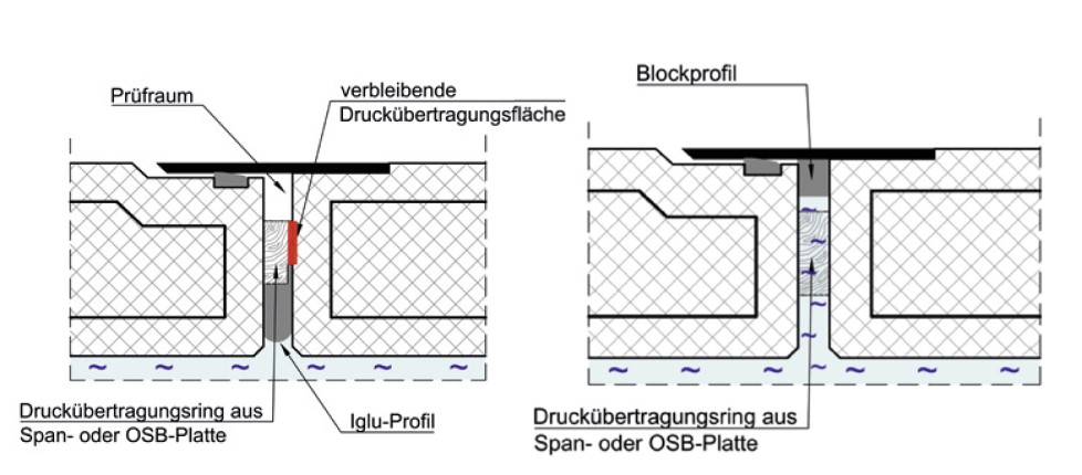 Recht beliebt bei den Vortriebsfirmen ist die Verwendung eines während des gesamten Vortriebs mitfahrenden inneren Fugenverschlusses, der am Druckübertragungsring aus Span- oder OSB-Platten befestigt wird und meist als „Igludichtung“ bezeichnet wird. Allerdings entwickelt dieses Profil (wie jedes andere Profil auch) seine Dichtwirkung nur in einer begrenzten Spannbreite seiner Verpressung.