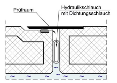 Die neueste Entwicklung auf dem Gebiet der inneren Fugenverschlüsse stellt der Hydraulikschlauch dar, auf den ein sogenannter Dichtungsschlauch verrutschsicher aufgespannt wird (s. Abb. 4). Dieser im Gegensatz zum Hydraulikschlauch unbewehrte Schlauch aus einem Elastomer mit deutlich geringerer Shore-Härte stellt eine kraftschlüssige und auch formschlüssige Verbindung zwischen dem harten Hydraulikschlauch und der rauen Betonoberfläche her.