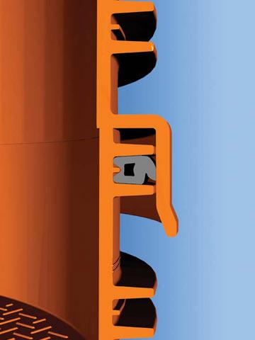 Bei der Dichtung von Rohranschlüssen bedient sich REHAU seiner langjährigen Erfahrung, beispielsweise beim Hochlast-Kanalrohrsystem AWADUKT PP SN 10 RAUSISTO. Die Dichtringe werden bei diesem SL-Dichtsystem (Safety-Lock) in der Sicke fixiert. So wird ein unbeabsichtigtes Herausschieben zuverlässig verhindert. Der Schacht fügt sich homogen in das Kanalsystem ein. Durch den einheitlichen Werkstoff wird überdies vermieden, dass sich Rohre und Schächte unterschiedlich setzen.