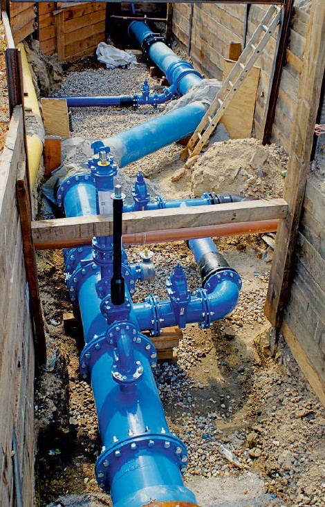 Im letzten Arbeitsschritt erfolgte die Druckprüfung der neuen Rohrleitung im beschleunigten Normalverfahren nach DVGW-Arbeitsblatt W 400-2 mit einem Prüfdruck von 15 bar und einer Prüfzeit von einer Stunde sowie die anschließende Desinfektion der Leitung.