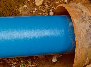Für Letzteres entschied man sich aus mehreren Gründen: Zur Verstärkung der galvanischen Schutzwirkung wird dem Zink durch Legierung ein 15 %-iger Anteil Aluminium beigefügt. Hierdurch und durch die Erhöhung der Gesamtmasse an Zink gegenüber dem Standard-Zink-Überzug (200 g/m2) ergibt sich eine zusätzliche Steigerung der zu erwartenden technischen Nutzungsdauer. Ebenso benötigen die Rohre diese Umhüllung, wenn der Ringraum zwischen Alt- und Neurohr verdämmt wird.